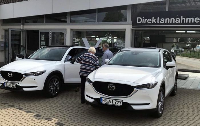 Heute sind die neuen Mazdas CX 5 für euch abgeholt worden. In den Autos